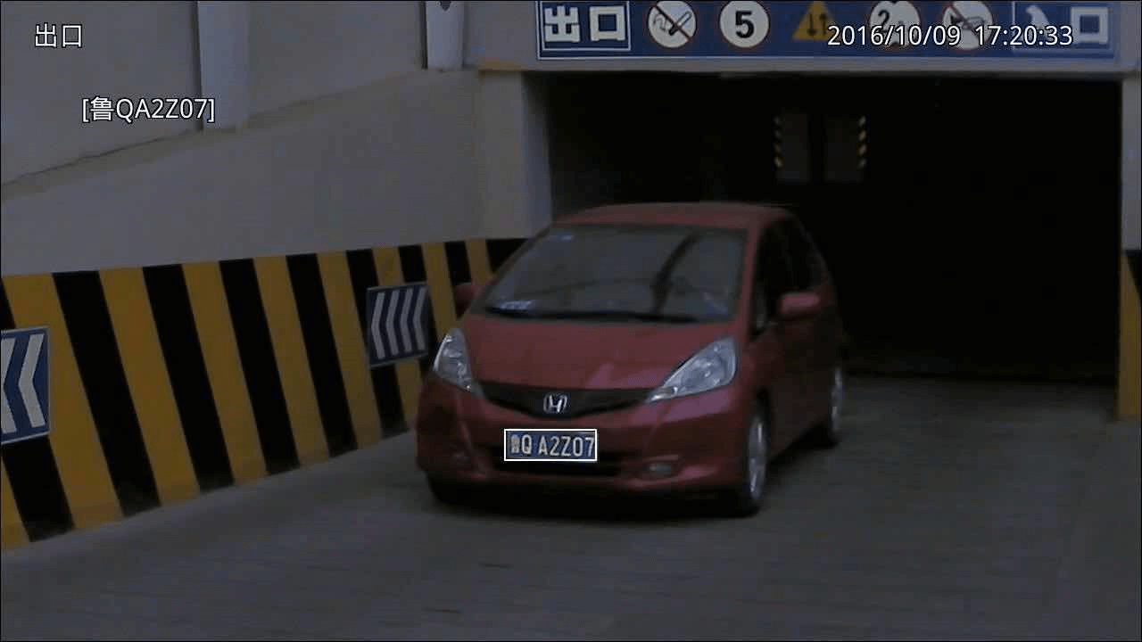 同時(shí)調(diào)節(jié)攝像機(jī)萬(wàn)向節(jié),使車(chē)牌盡量保持水平,避免出現(xiàn)車(chē)牌左高右低或者左低右高的情況, 佳的效果可以參考下圖: